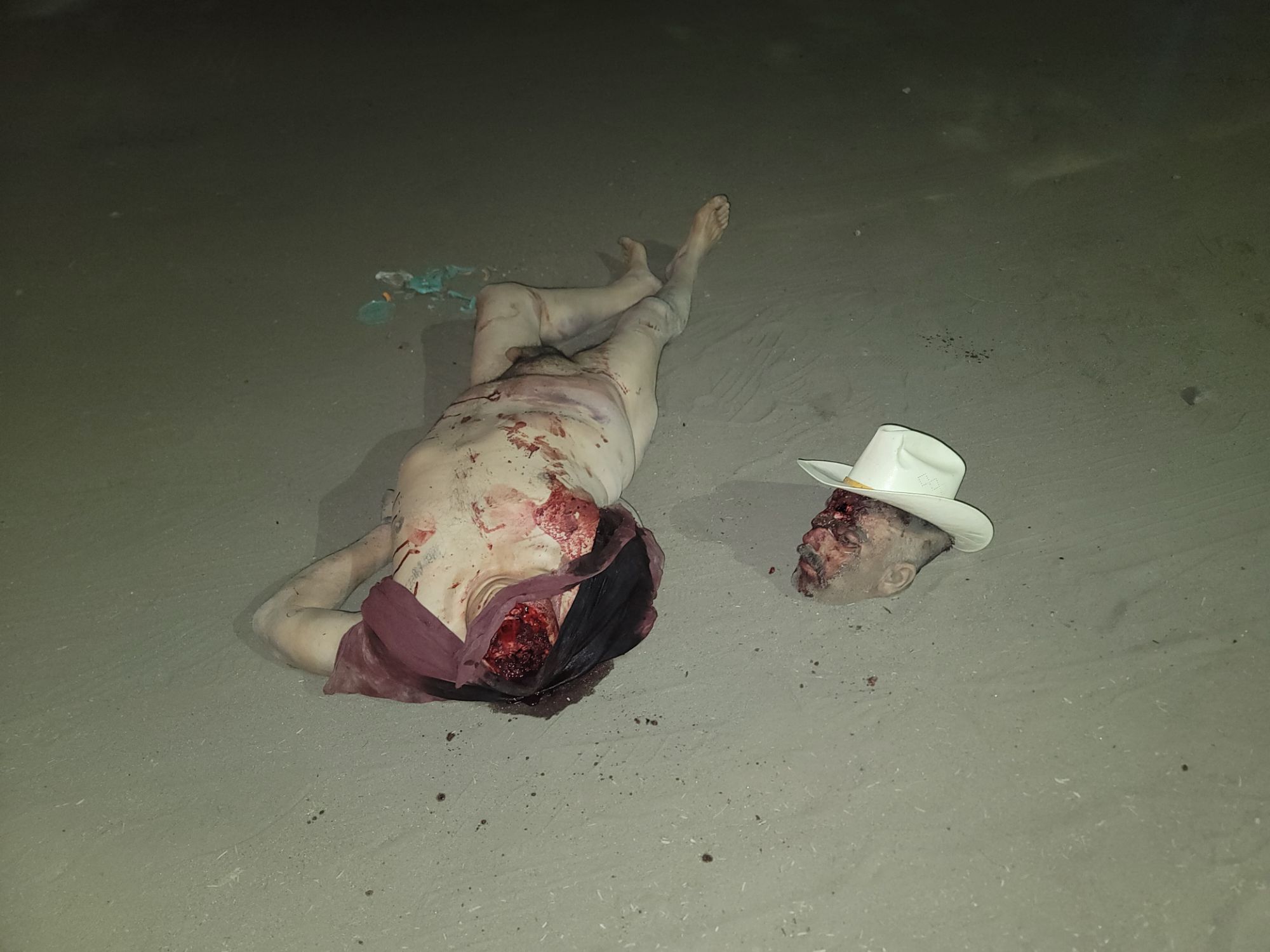 Junto al cadáver se encontraba una cabeza humana, con un sombrero sobre la cabeza.