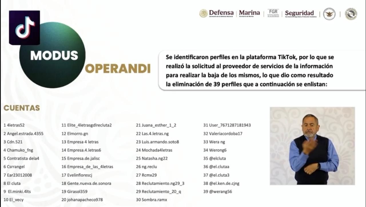 Estos perfiles fueron detectados gracias a labores de inteligencia y denuncias ciudadanas. El gobierno solicitó a TikTok su eliminación inmediata por violar políticas de uso y estar ligados a actividades criminales.